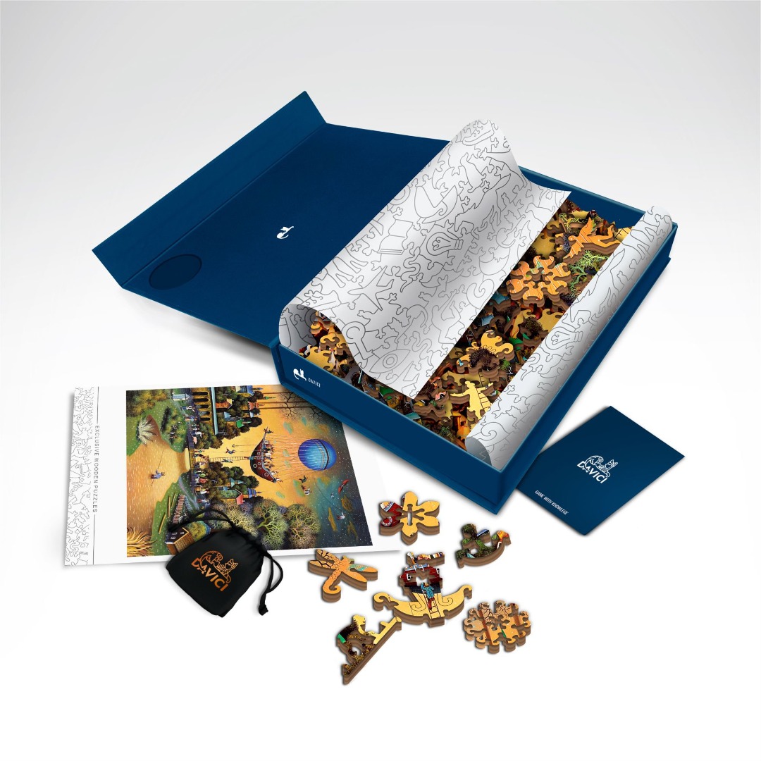Davici is een zeer exclusief Amerikaans puzzelmerk met houten puzzelstukjes. In plaats van de gebruikelijke details hebben deze puzzelstukjes de figuren van vogels en dieren, draken en vreemde vissen, koningen en zwervers, sterren en planeten, huizen en steden. Honderden helden van sprookjes en surrealistische verhalen. Er wordt gebruik gemaakt van natuurlijk papier, berkenhout en een onschadelijkeniet-giftige lijm.