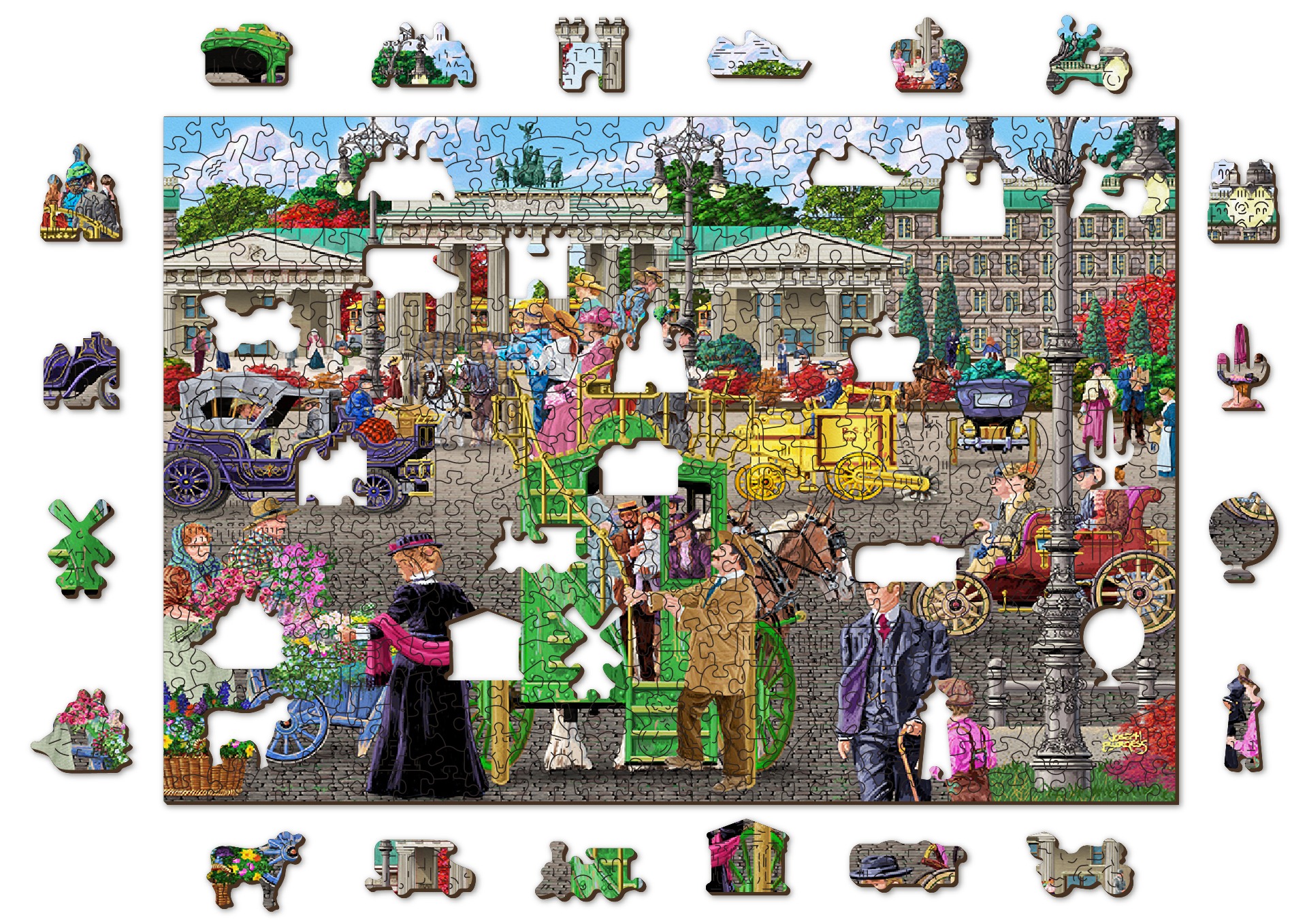 Wooden.City is een Pools merk van zeer goede kwaliteit. Zij produceren houten puzzels waarbij iedere puzzel voorzien is van een aantal speciaal gevormde puzzelstukjes o.a. vogels, vlinders en dieren. De puzzels zijn aan 2 kanten te leggen, de afbeelding zelf en de achterkant is een bloemetjespatroon in 2 kleuren. Dit geldt niet voor de vormpuzzels. De stukjes zijn 3 - 4 mm dik.