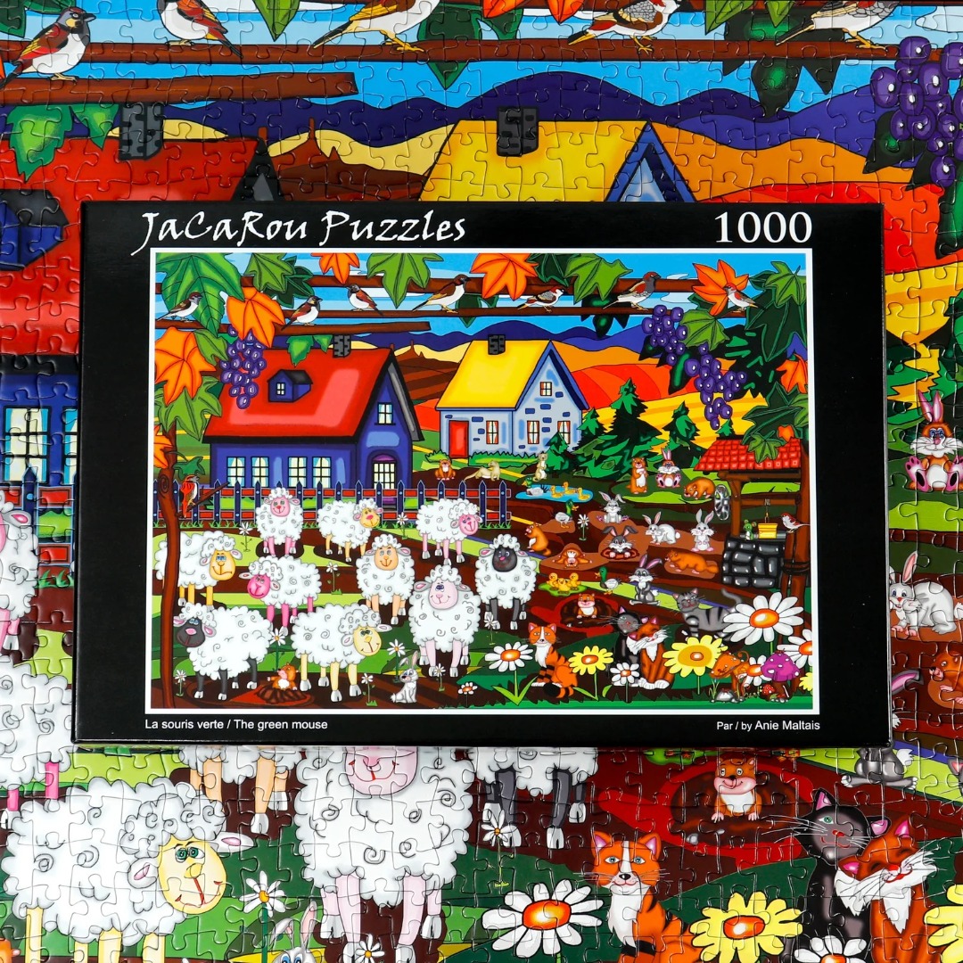 JaCaRou Puzzles is een Canadees merk van uitstekende kwaliteit. De puzzelstukjes hebben een zeer goede dikte en een perfecte pasvorm. Deze kleurrijke, exclusieve puzzels worden door bovengenoemde artieste zelf gecreëerd en in eigen beheer uitgegeven. De puzzelstukjes zijn afgewerkt met een glanzend laagje. Wordt in rastervorm gelegd.