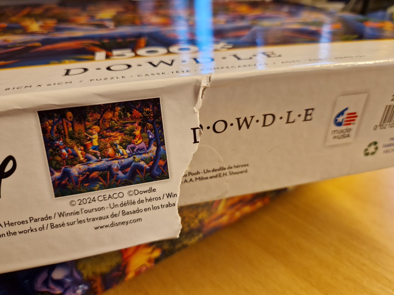DE DOOS IS ONDERAAN AAN DE RAND INGESCHEURD. RECHTSBOVEN IN HET HOEKJE ZIT OOK EEN LICHTE BESCHADIGING. ZIE DE FOTO'S. DAAROM KOST DEZE PUZZEL GEEN 32,95 EURO MAAR 26,95 EURO.