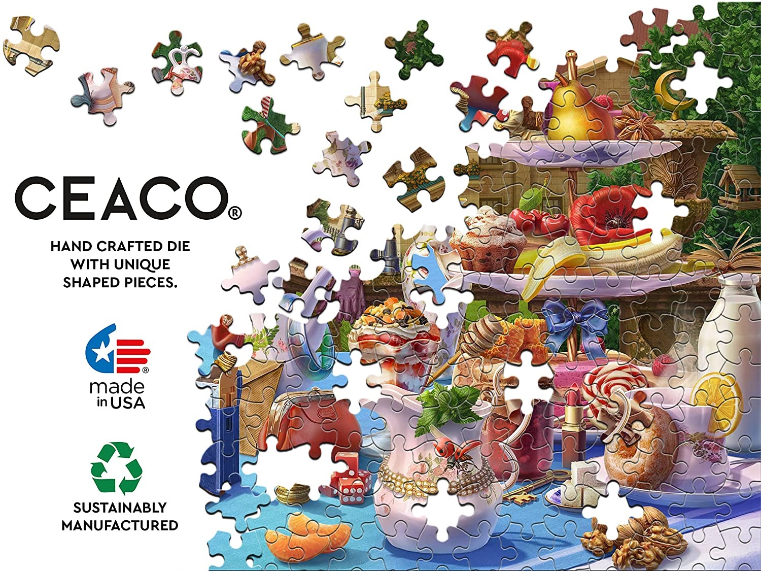 Ceaco is een Amerikaans puzzelmerk. De puzzelstukjes zijn wat dunner dan normaal en voelen ook lichter aan. Ze hebben een normale grootte. Wordt in rastervorm gelegd met erg veel variatie in de puzzelstukjes. De kleuren zijn warm.
