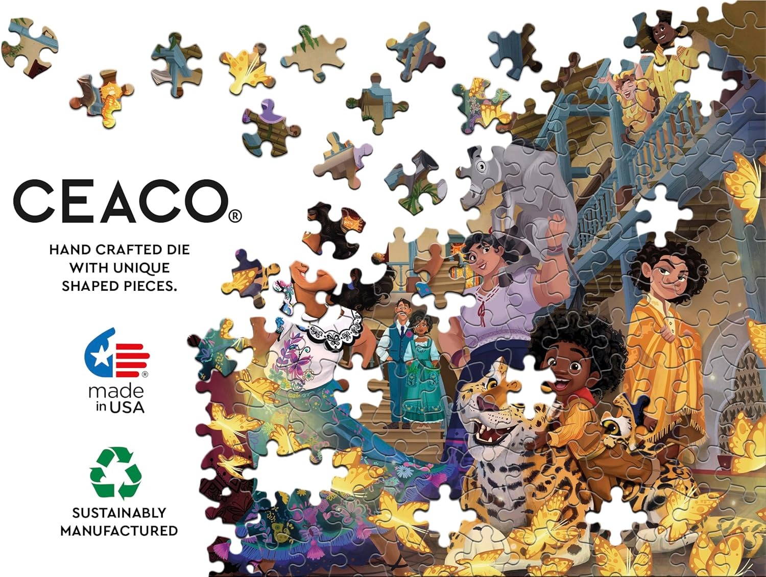Ceaco is een Amerikaans merk. De puzzelstukjes zijn wat dunner dan normaal en voelen ook lichter aan. Ze hebben een normale grootte. Wordt in rastervorm gelegd met heel veel variatie in de puzzelstukjes. De kleuren zijn warm.