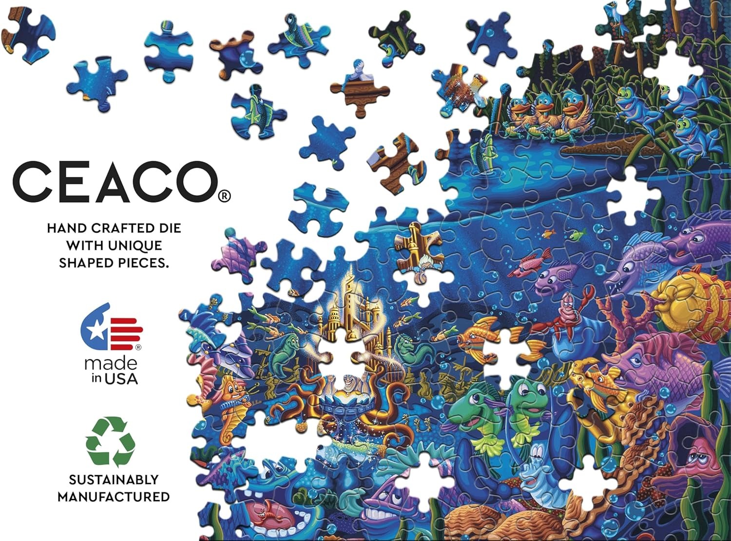 Ceaco is een Amerikaans puzzelmerk. De puzzelstukjes zijn wat dunner dan normaal en voelen ook lichter aan. Ze hebben een normale grootte. Wordt in rastervorm gelegd met heel veel variatie in de puzzelstukjes. De kleuren zijn warm.