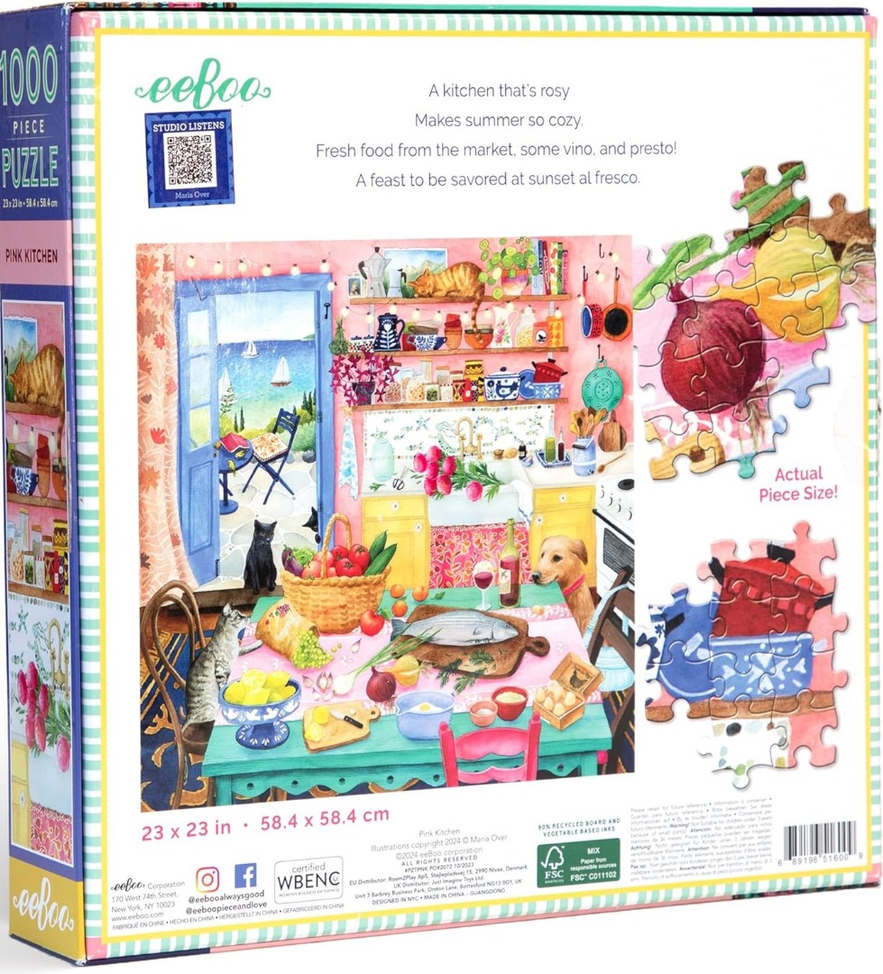 EeBoo Puzzles is een Amerikaans merk van uitstekende kwaliteit. De puzzelstukjes hebben een goede dikte, zijn stevig en hebben een perfecte pasvorm. Ze zijn afgewerkt met een glanzend laagje. De kleuren zijn heel warm en zelfs de kleinste details zijn goed zichtbaar. Wordt geleverd met een kleine poster van de puzzel.