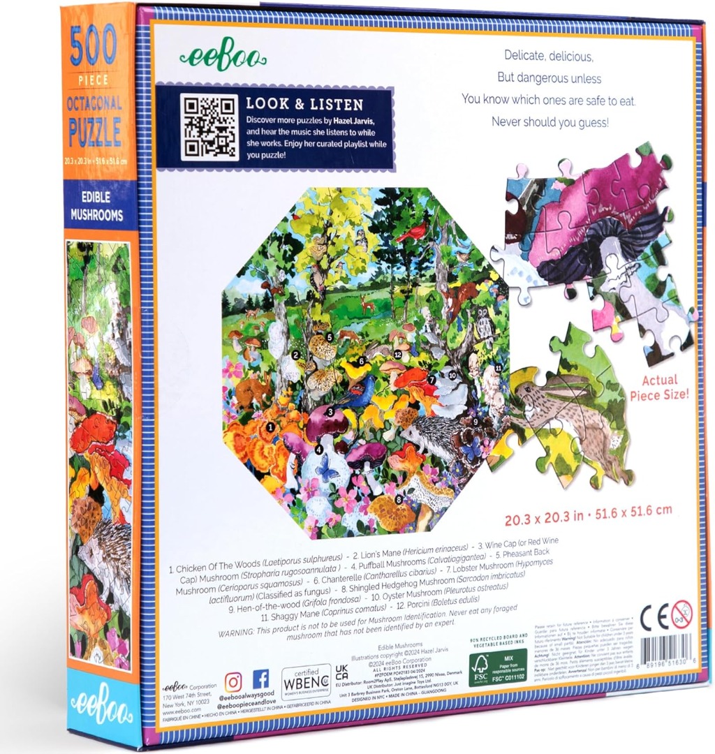 EeBoo Puzzles is een Amerikaans merk van uitstekende kwaliteit. De puzzelstukjes hebben een goede dikte, zijn stevig en hebben een perfecte pasvorm. Ze zijn afgewerkt met een glanzend laagje. De kleuren zijn heel warm en zelfs de kleinste details zijn goed zichtbaar. Wordt geleverd met een kleine poster van de puzzel.