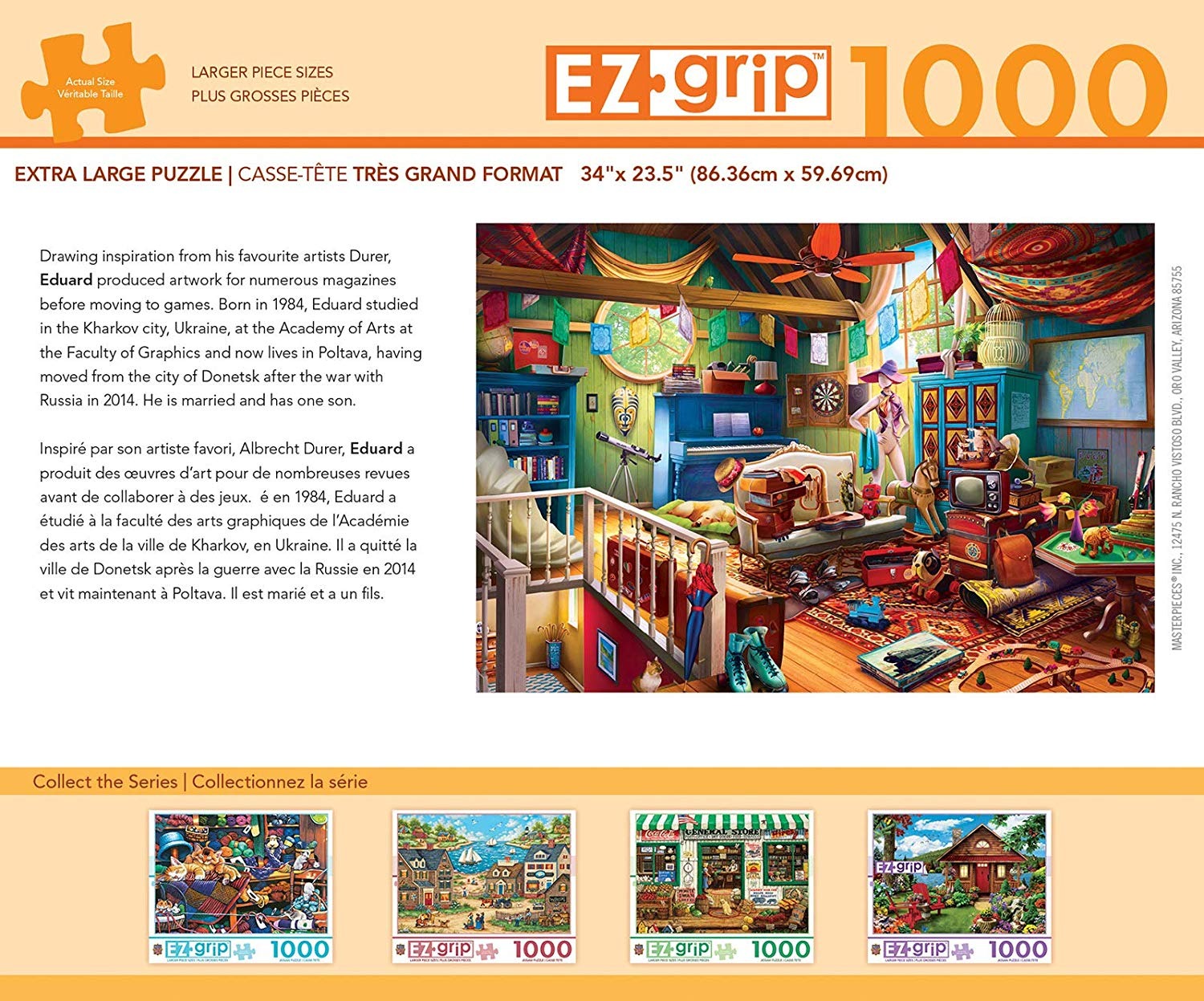 Masterpieces is een Amerikaans merk van goede kwaliteit. De puzzelstukjes zijn stevig maar zijn iets dunner dan bv. Ravensburger en Gibsons en voelen ook iets lichter aan. Ze hebben zeer gevarieerde vormen en worden dan ook niet in rastervorm gelegd, wat het puzzelen extra leuk maakt. De kleuren zijn warm.