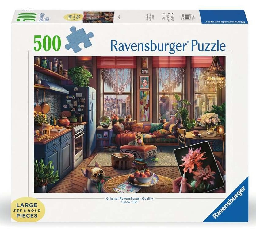 Deze puzzel is net zo groot als een puzzel van 1000 Stukjes. De puzzelstukjes zijn derhalve 2 x zo groot dan normaal.