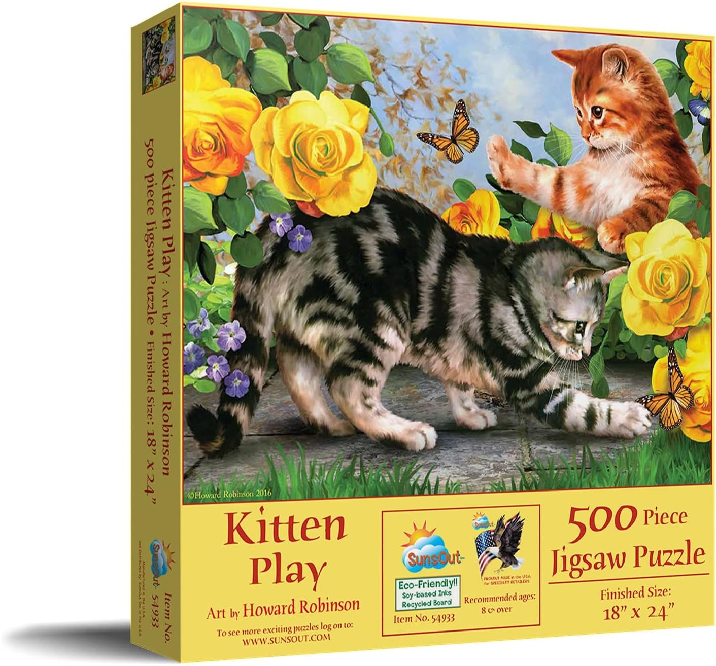 SunsOut is een Amerikaans merk van uitstekende kwaliteit. De puzzelstukjes hebben een goede dikte, zijn gevarieerd en hebben een perfecte pasvorm. Wordt in soort van rastervorm gelegd maar omdat er veel variatie in de puzzelstukjes zit, is het meteen duidelijk of ze passen of niet. De vormpuzzels hebben tevens puzzelstukjes met aparte vormen en worden derhalve dan ook niet in rastervorm gelegd. De puzzelstukjes zijn afgewerkt met een licht glanzend laagje. Deze puzzels worden milieu-vriendelijk geproduceerd van gerecycled karton.