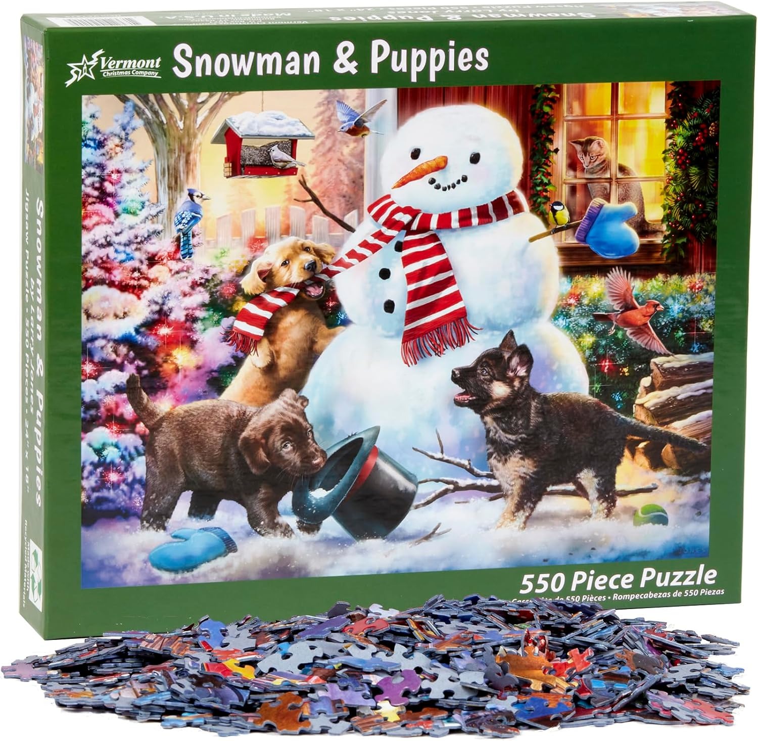 The Vermont Christmas Company is een Amerikaans merk van uitstekende kwaliteit. De puzzelstukjes hebben een goede dikte, zijn zeer stevig en hebben een perfecte pasvorm. De puzzel wordt in rastervorm gelegd maar de puzzelstukjes op zich hebben erg veel variëteit en daardoor is het altijd duidelijk waar een stukje past. De kleuren zijn warm.