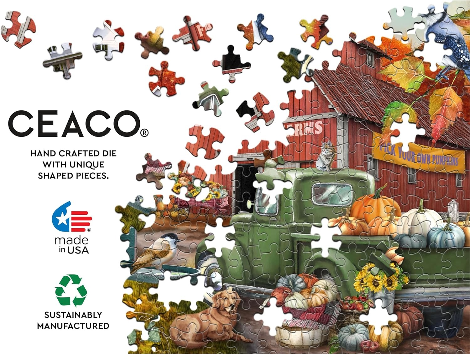 Ceaco is een Amerikaans puzzelmerk. De puzzelstukjes zijn wat dunner dan normaal en voelen ook lichter aan. Ze hebben een normale grootte. Wordt in rastervorm gelegd met heel veel variatie in de puzzelstukjes. De kleuren zijn warm.
