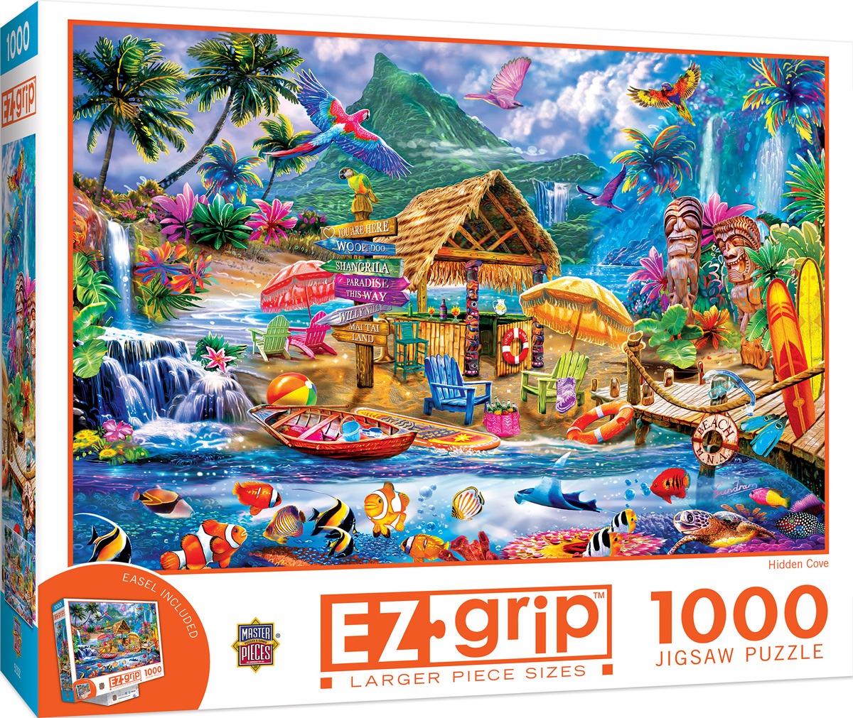 Masterpieces is een Amerikaans merk van goede kwaliteit. De puzzelstukjes zijn stevig maar zijn iets dunner dan bv. Ravensburger en Gibsons en voelen ook iets lichter aan. De kleuren zijn warm. Wordt in rastervorm gelegd met heel veel variatie in de puzzelstukjes. Wordt geleverd met standaard om de deksel van de doos in te zetten.