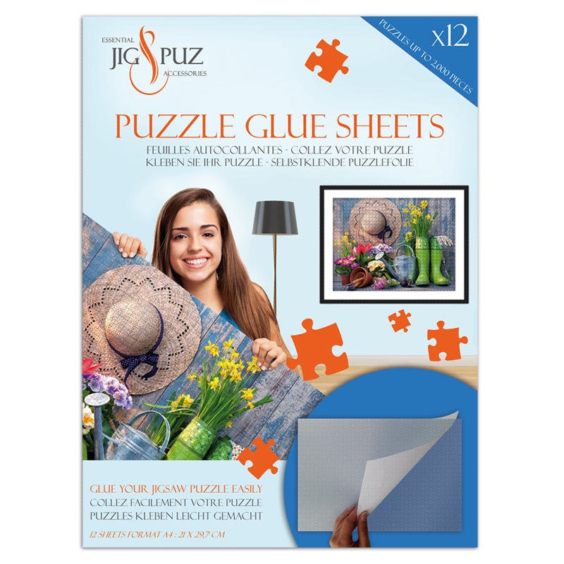 Gemakkelijk zonder lijm puzzelfolie achter op de puzzel plakken, daarna ophangen!