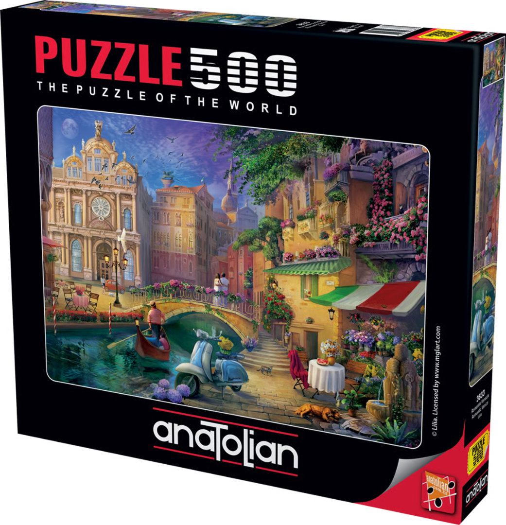Anatolian is een Turks merk van uitstekende kwaliteit. De puzzelstukjes zijn stevig en hebben een goede dikte. De kleuren zijn warm en de afbeeldingen scherp. De puzzel wordt in rastervorm gelegd (net zoals Gibsons en Ravensburger) maar de puzzelstukjes zelf hebben zoveel variëteit dat het altijd duidelijk is of een stukje past of niet. Wordt geleverd met een standaard om de deksel in te zetten.