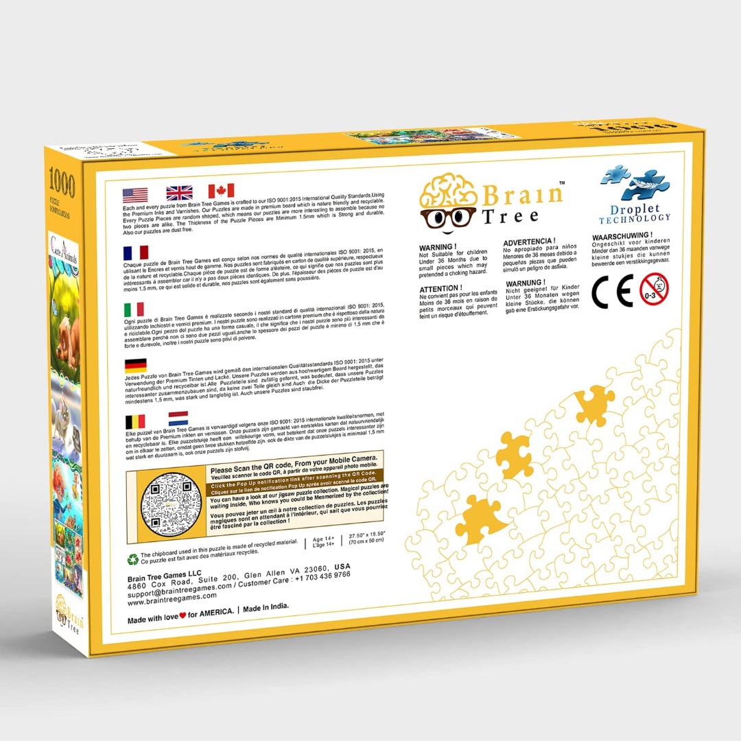 Brain Tree is een Amerikaanse merk van zeer goede kwaliteit. De puzzelstukjes hebben een goede dikte, zijn stevig en hebben een perfecte pasvorm. Ze hebben een matte finish zodat je geen last hebt van spiegeling. Wordt in rastervorm gelegd maar omdat er erg veel variatie is in de puzzelstukjes is het altijd meteen duidelijk of een stukje past of niet. Wordt gemaakt van eersteklas karton dat natuurvriendelijk en recyclebaar is. Wordt geleverd met poster, kartonnen sorteerbakjes, kartonnen standaard om de deksel van de doos in te zetten en een plastic hersluitbaar zakje.