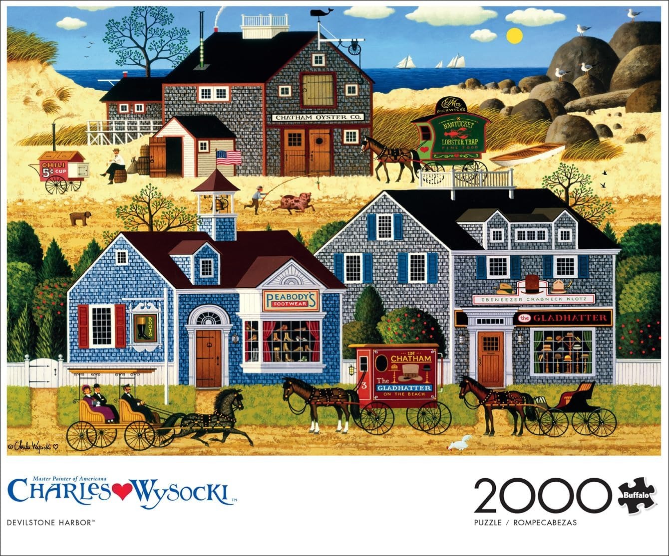 Buffalo Games is een Amerikaanse merk van uitstekende kwaliteit. De puzzelstukjes hebben een zeer goede dikte, zijn stevig en hebben een perfecte pasvorm. De puzzel wordt gelegd in rastervorm (vergelijkbaar met Gibsons en Ravensburger). Omdat de puzzelstukjes op zich variëren, is het altijd meteen duidelijk of een stukje past of niet.