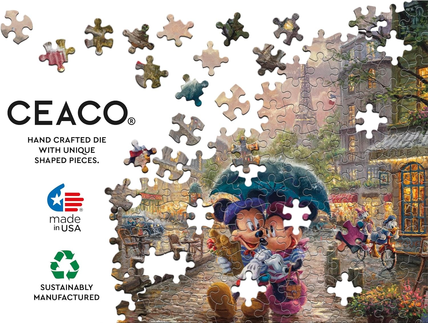 Ceaco is een Amerikaans puzzelmerk. De puzzelstukjes zijn wat dunner dan normaal en voelen ook lichter aan. Ze hebben een normale grootte. Wordt in rastervorm gelegd met heel veel variatie in de puzzelstukjes.