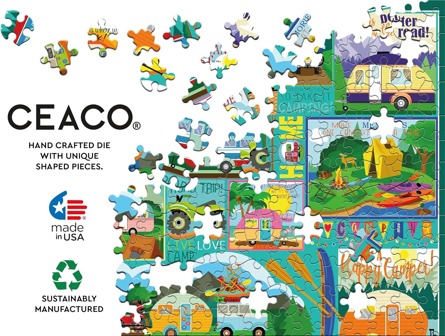 Ceaco is een Amerikaans puzzelmerk. De puzzelstukjes zijn wat dunner dan normaal en voelen ook lichter aan. Ze hebben een normale grootte. De kleuren zijn warm. Wordt in rastervorm gelegd met erg veel variatie in de puzzelstukjes.