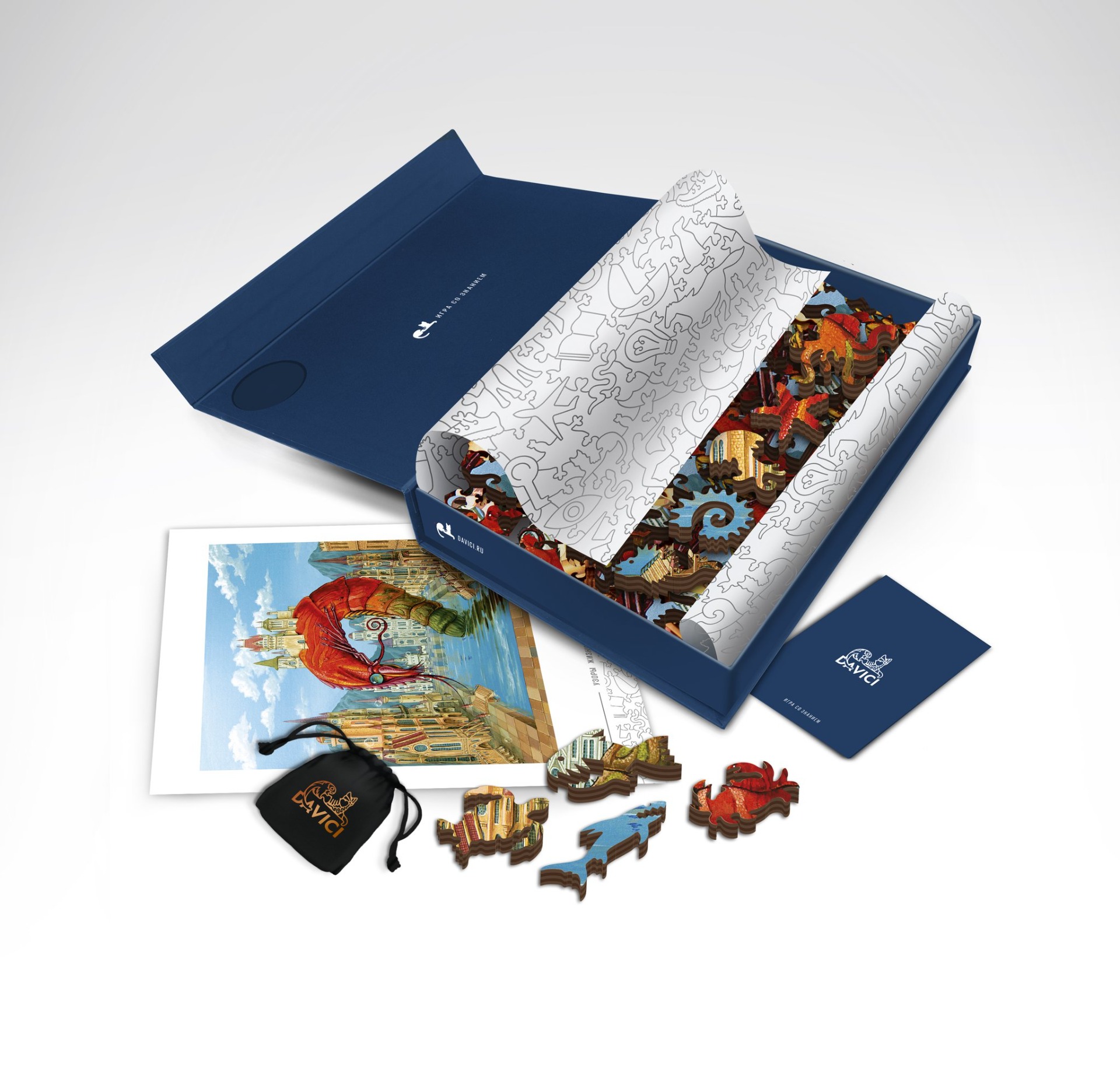 Davici is een zeer exclusief Amerikaans puzzelmerk met houten puzzelstukjes. In plaats van de gebruikelijke details hebben deze puzzelstukjes de figuren van vogels en dieren, draken en vreemde vissen, koningen en zwervers, sterren en planeten, huizen en steden. Honderden helden van sprookjes en surrealistische verhalen. Er wordt gebruik gemaakt van natuurlijk papier, berkenhout en een onschadelijkeniet-giftige lijm.