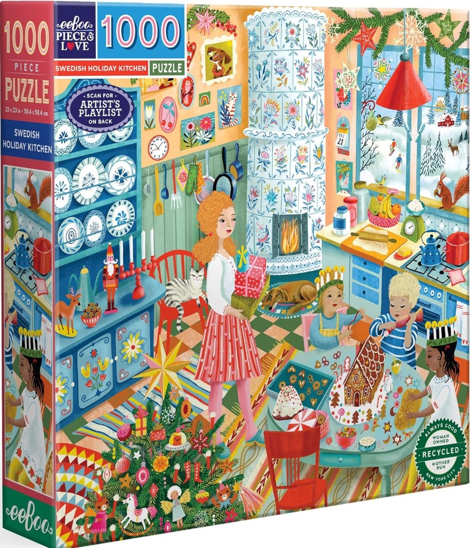 EeBoo Puzzles is een Amerikaans merk van uitstekende kwaliteit. De puzzelstukjes hebben een goede dikte, zijn stevig en hebben een perfecte pasvorm. Ze zijn afgewerkt met een glanzend laagje. De kleuren zijn heel warm en zelfs de kleinste details zijn goed zichtbaar. Wordt geleverd met een kleine poster van de puzzel.