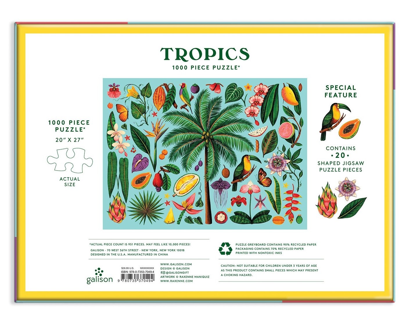 Galison is een Amerikaans merk van zeer goede kwaliteit. De puzzelstukjes hebben een goede dikte, zijn stevig en hebben een perfecte pasvorm. De kleuren zijn heel warm. Wordt in rastervorm gelegd. Om het milieu te sparen zijn de dozen zijn niet geseald. De plastic zak met puzzelstukjes is wel geseald. Wordt geleverd met poster.