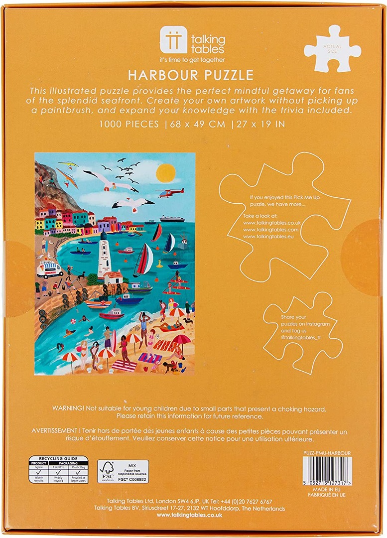 Talking Tables is een Engels merk van zeer goede kwaliteit. De puzzelstukjes hebben een perfecte pasvorm. Je kunt stukjes verplaatsen zonder dat ze uitelkaar vallen. De kleuren zijn warm met een lichte glans. Wordt in rastervorm gelegd. De puzzel zit in een compact doosje met een A4 poster van de afbeelding.