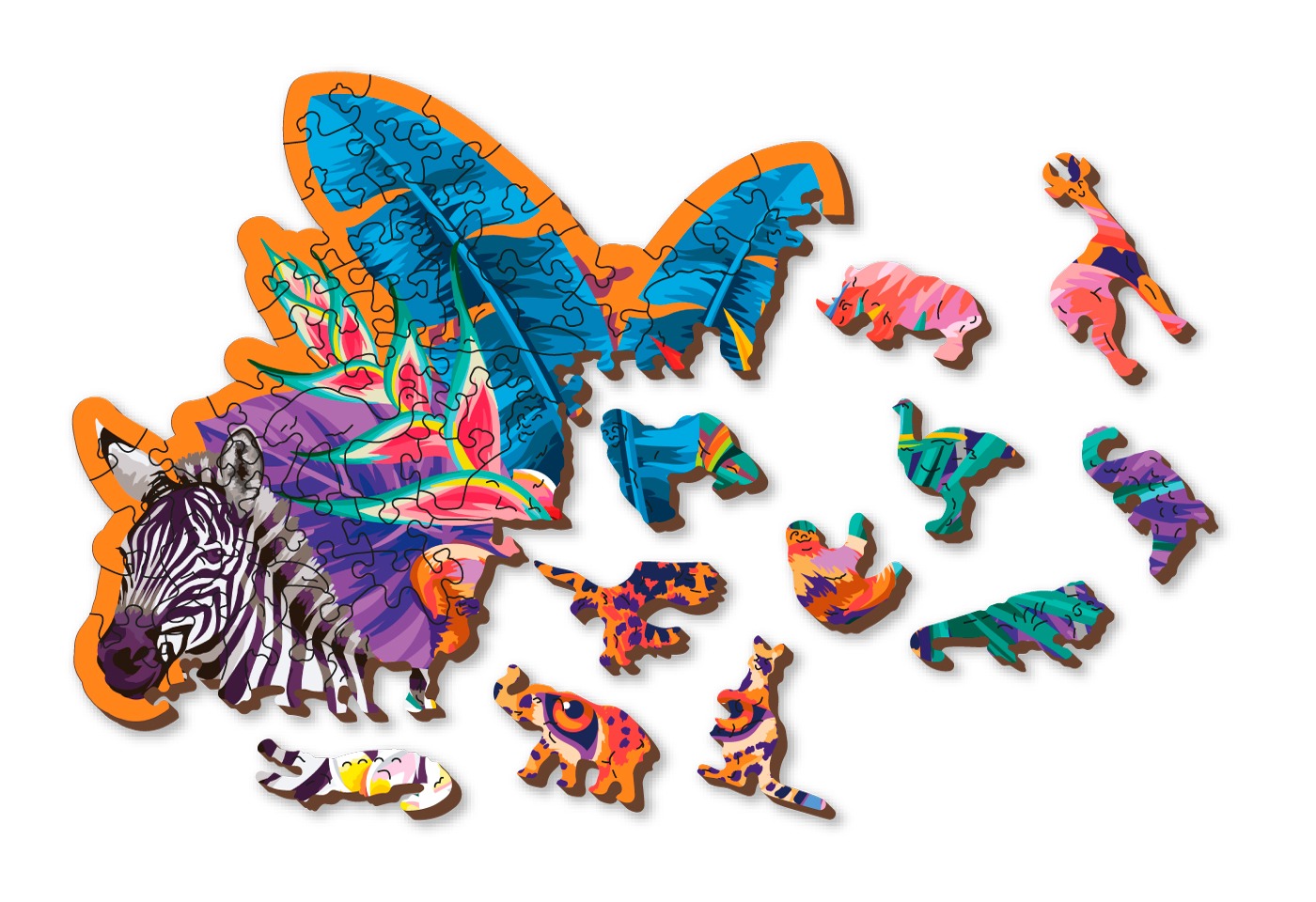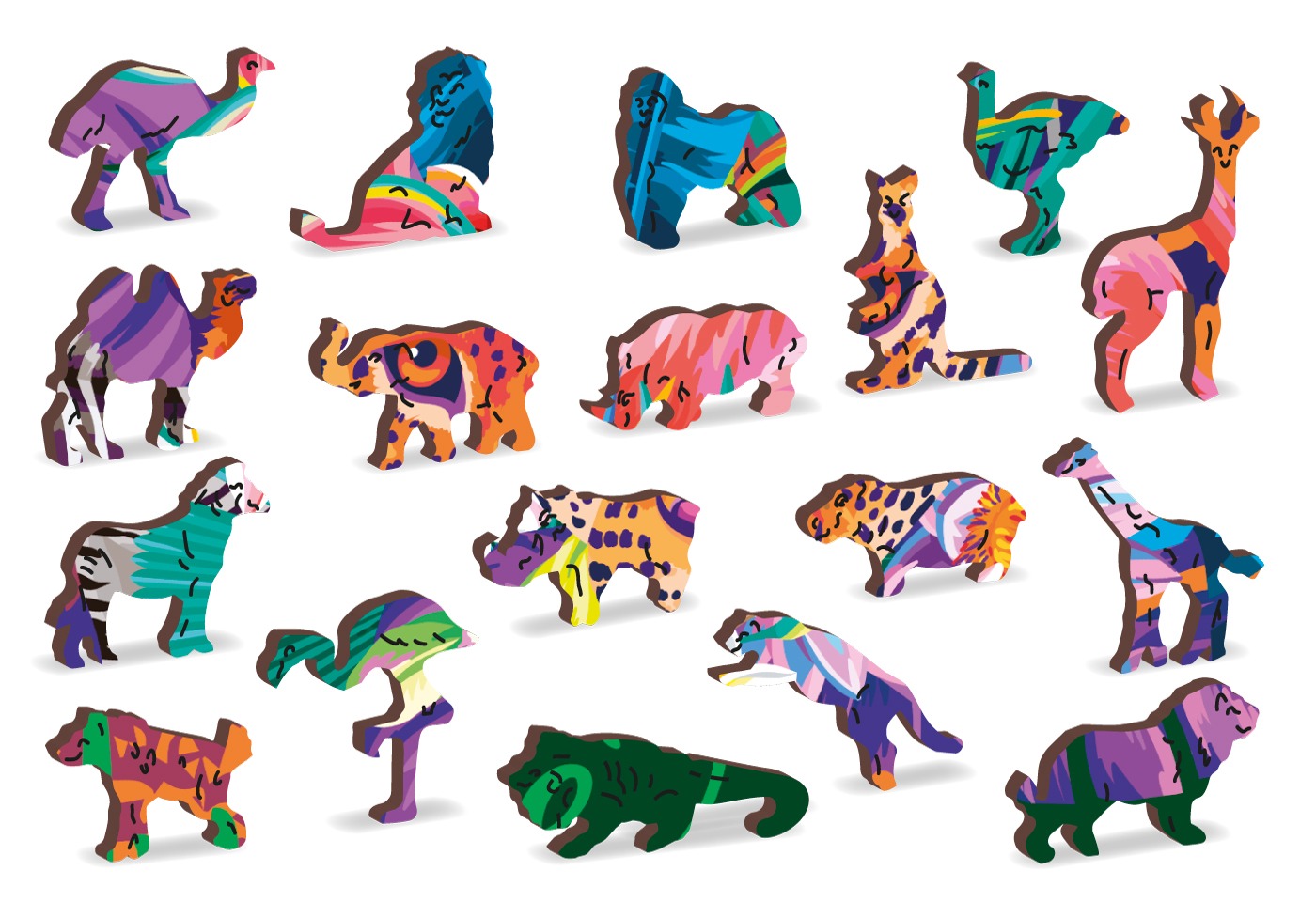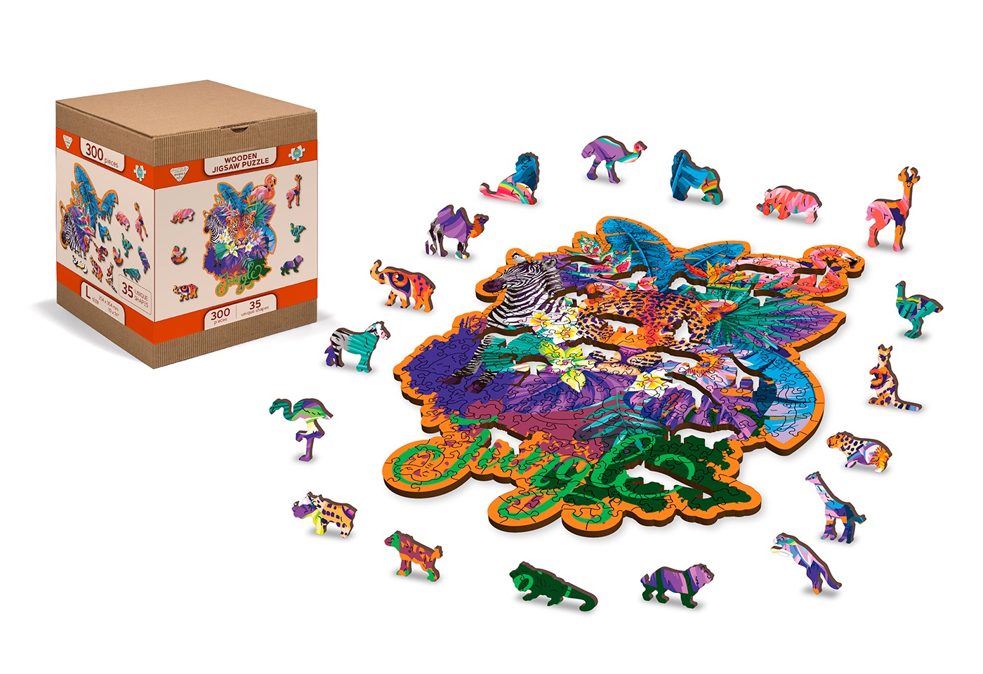 Wooden.City is een Pools merk van zeer goede kwaliteit. Zij produceren houten puzzels waarbij iedere puzzel voorzien is van een aantal speciaal gevormde puzzelstukjes o.a. vogels, vlinders en dieren. De puzzels zijn aan 2 kanten te leggen, de afbeelding zelf en de achterkant is een bloemetjespatroon in 2 kleuren. Dit geldt niet voor de vormpuzzels. De stukjes zijn 3 - 4 mm dik.