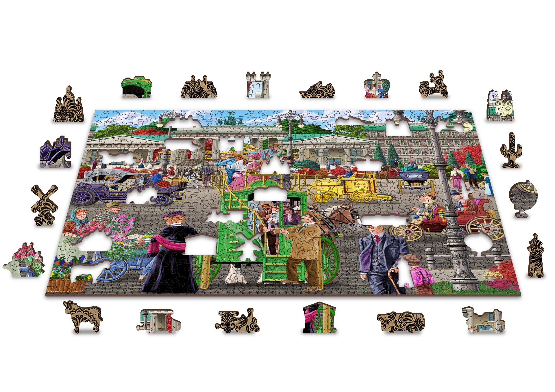 Wooden.City is een Pools merk van zeer goede kwaliteit. Zij produceren houten puzzels waarbij iedere puzzel voorzien is van een aantal speciaal gevormde puzzelstukjes o.a. vogels, vlinders en dieren. De puzzels zijn aan 2 kanten te leggen, de afbeelding zelf en de achterkant is een bloemetjespatroon in 2 kleuren. Dit geldt niet voor de vormpuzzels. De stukjes zijn 3 - 4 mm dik.