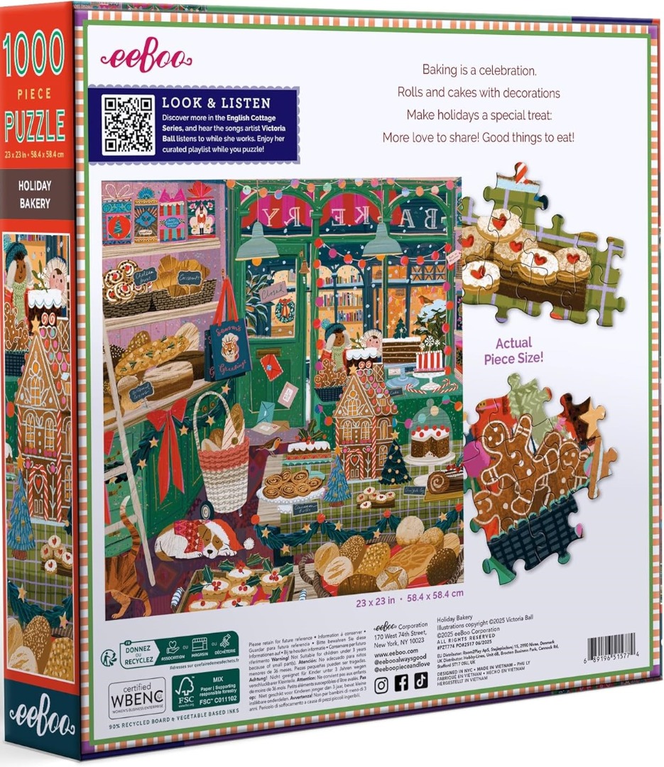 EeBoo Puzzles is een Amerikaans merk van uitstekende kwaliteit. De puzzelstukjes hebben een goede dikte, zijn stevig en hebben een perfecte pasvorm. Ze zijn afgewerkt met een glanzend laagje. De kleuren zijn heel warm en zelfs de kleinste details zijn goed zichtbaar. Wordt geleverd met een kleine poster van de puzzel.