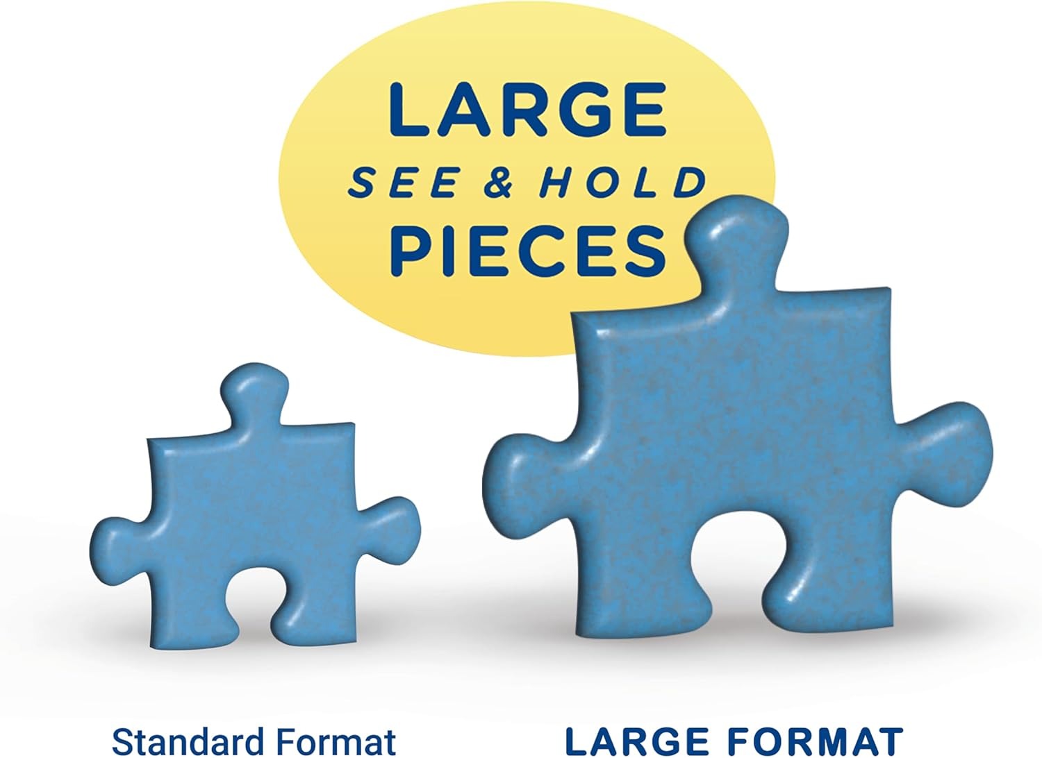 Deze puzzel is net zo groot als een puzzel van 1000 Stukjes. De puzzelstukjes zijn derhalve 2 x zo groot dan normaal.